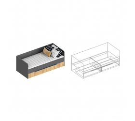 - Кровать с ящиками 800 Стил темно серый лофт / дуб золотистый. 1 шт.