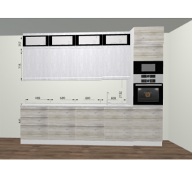 Размер кухонного гарнитура: Ширина 2400 мм. Высота 2132 мм. Глубина 600 мм. (с учетом столешницы)