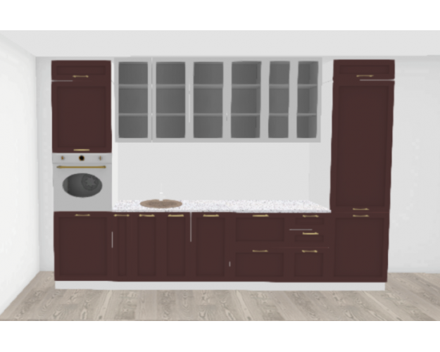 Размер: Ширина: 3400 мм. Высота: 2500 мм. Глубина 600 мм (со столешницей)