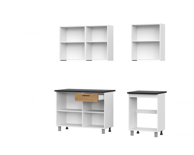 - Фасады навесных шкафов не комплектуются ручками. Открываются за нижний торец фасада, за счёт приподнятых относительно боковин нижних вязок.