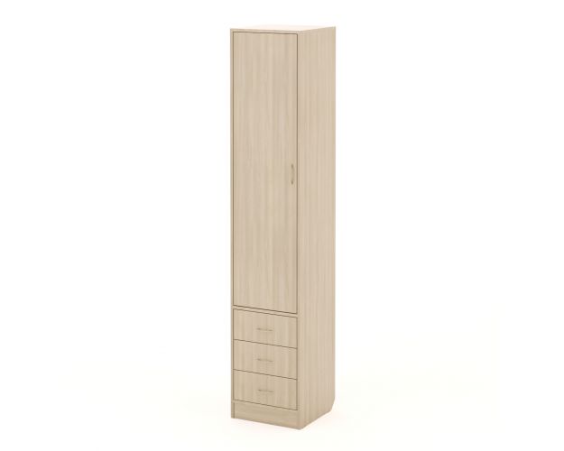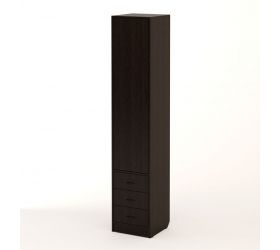 Пенал с тремя выдвижными ящиками отличается простотой и лаконичностью. За дверью находятся полки, что делает пенал очень вместительным. Небольшие размеры пенала позволят разместить его даже в небольших помещениях.