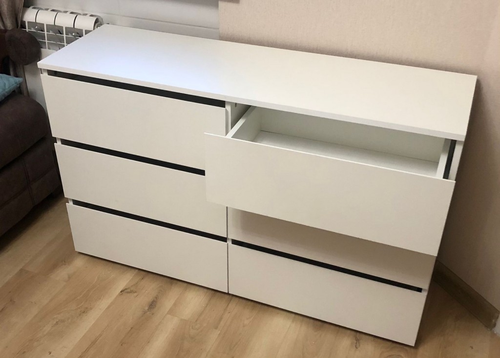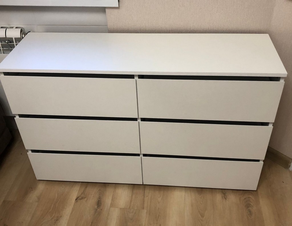 Комод предназначен для организации хранения вещей, белья или одежды и для этого у него есть целых шесть выдвижных ящиков по два в каждом из трех ярусов. На его верхней крышке вы сможете разместить рамки с фотографиями или декоративные элементы, что подчеркнет стиль интерьера комнаты.