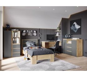 МС Молодежная "Юкки" дуб делано / белый состоит из 12 модулей: